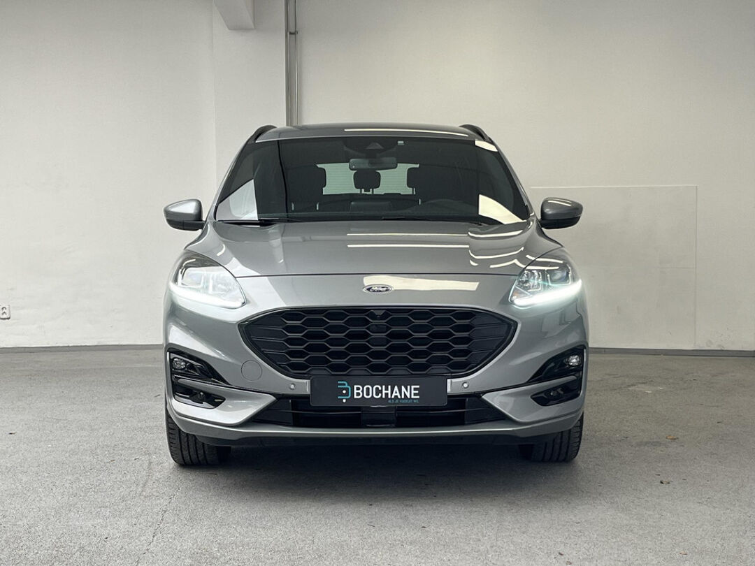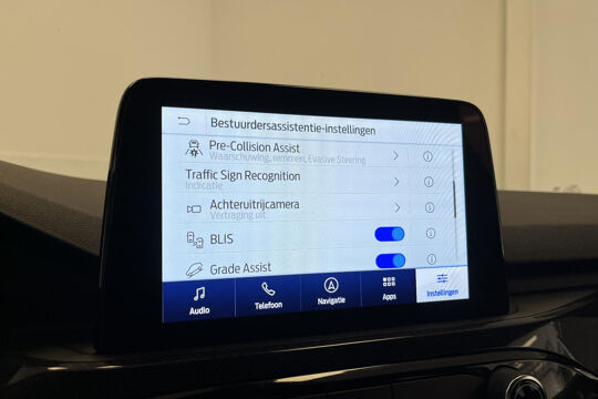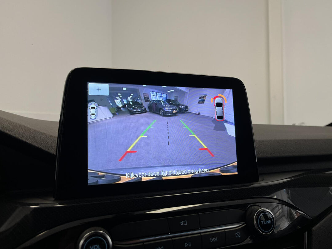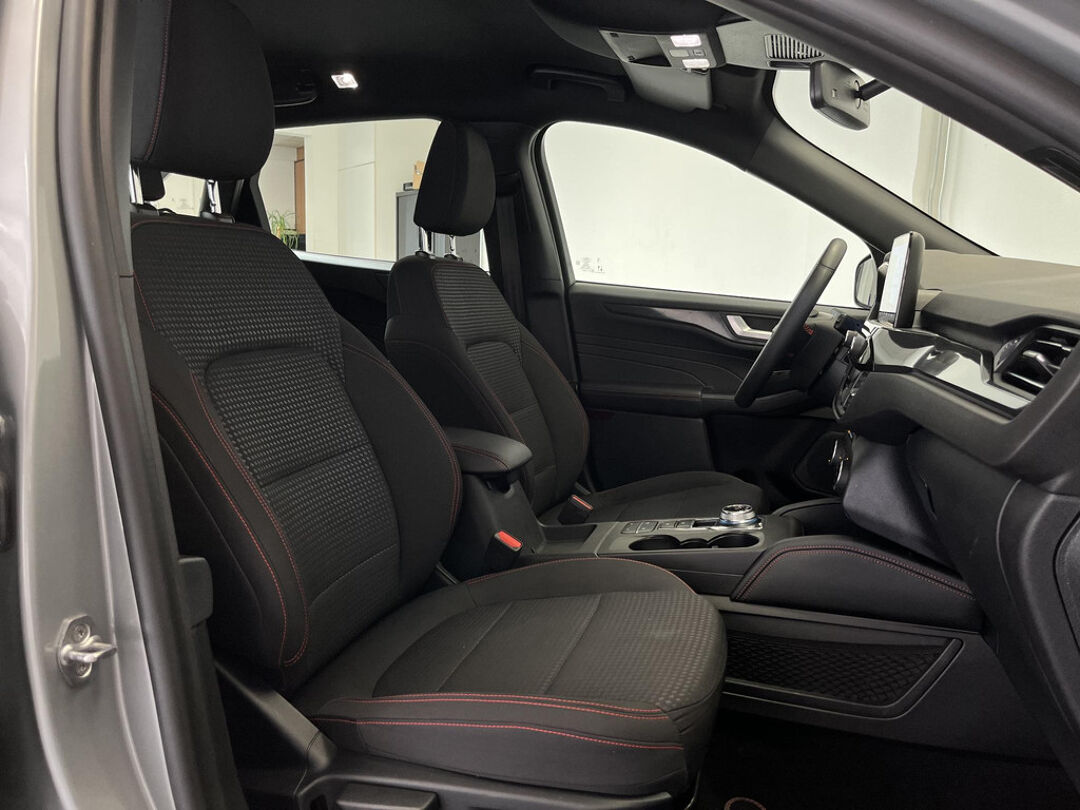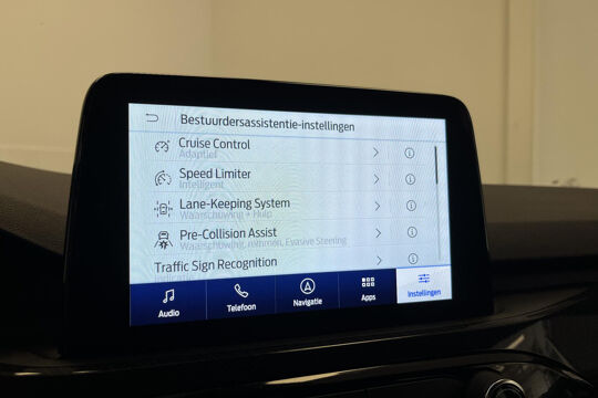 Zoals u mag verwachten van deze Ford Kuga is hij uitgerust met een reeks aan actieve veiligheidssystemen. Wat deze auto ook kan, is lezen. Hij 'leest' voor u de verkeersborden tijdens de rit en attendeert u erop door ze op het dashboard te projecteren. Het Lane-keeping systeem let constant op en waarschuwt of corrigeert als u onoplettend over de lijnen van de rijstrook gaat. Forward collision warning waarschuwt voor een kop-staart botsing. In deze Ford vinden we verder een dodehoekdetectie, hill hold functie, vermoeidheidsherkenning, autonoom remsysteem en bandenspanningcontrolesysteem.