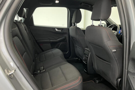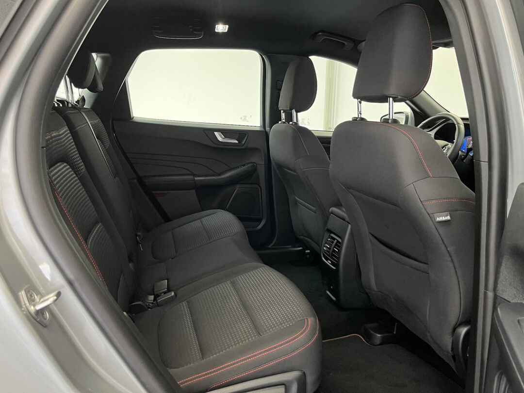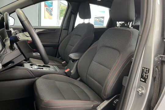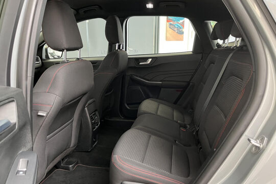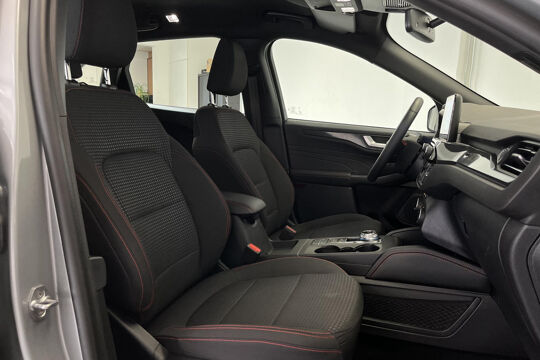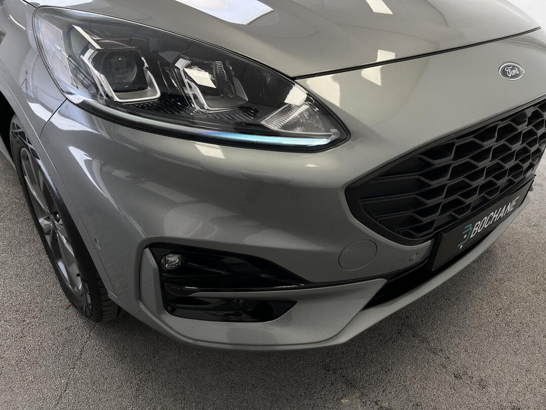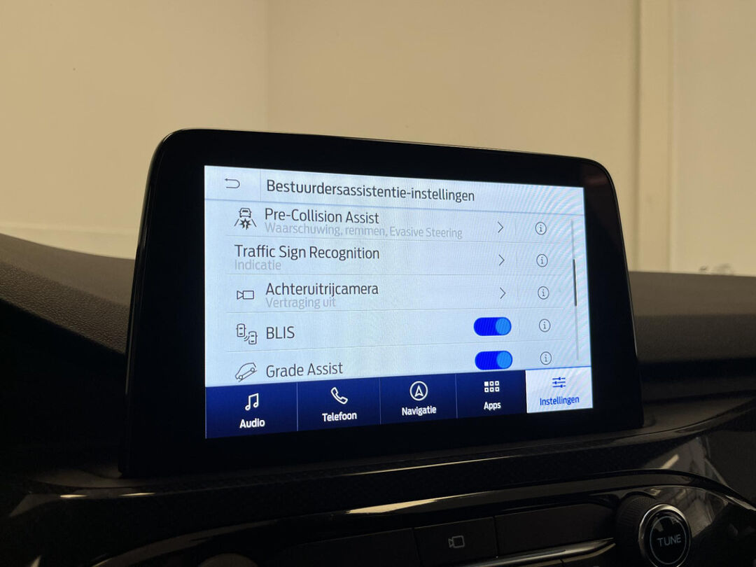 Zoals u mag verwachten van deze Ford Kuga is hij uitgerust met een reeks aan actieve veiligheidssystemen. Wat deze auto ook kan, is lezen. Hij 'leest' voor u de verkeersborden tijdens de rit en attendeert u erop door ze op het dashboard te projecteren. Het Lane-keeping systeem let constant op en waarschuwt of corrigeert als u onoplettend over de lijnen van de rijstrook gaat. Forward collision warning waarschuwt voor een kop-staart botsing. In deze Ford vinden we verder een dodehoekdetectie, hill hold functie, vermoeidheidsherkenning, autonoom remsysteem en bandenspanningcontrolesysteem.
