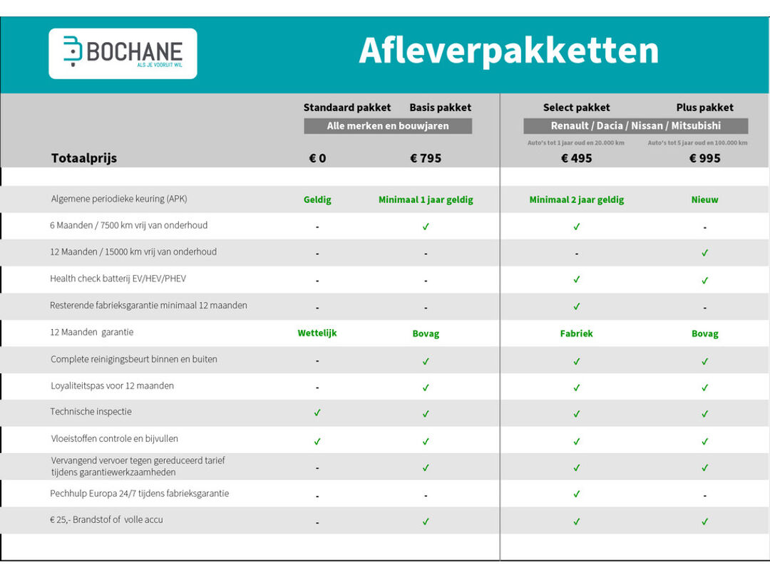 - Geldige APK - Tenaamstelling van het voertuig - Technisch inspectie - Vloeistoffen controle en bijvullen