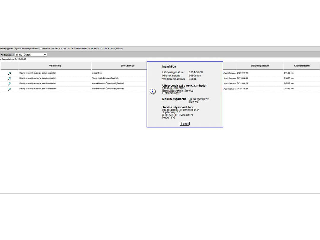 Volledige dealeronderhoudshistorie beschikbaar