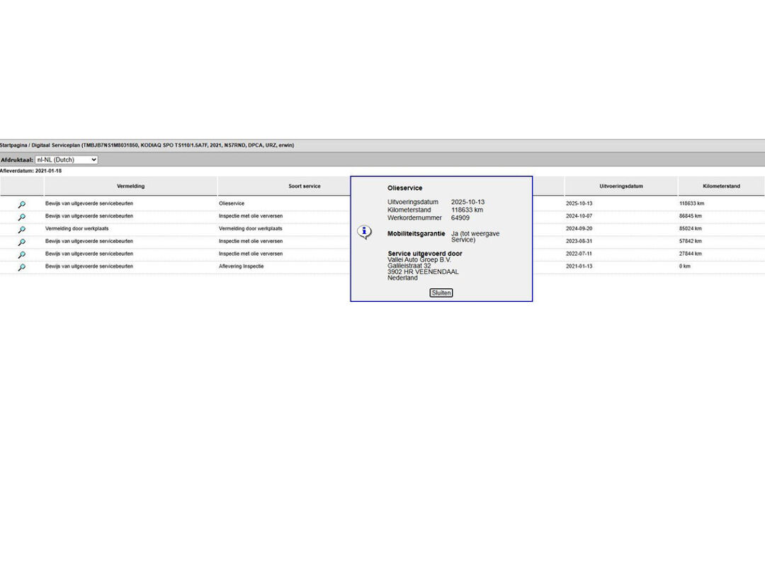 Volledige dealeronderhoudshistorie beschikbaar